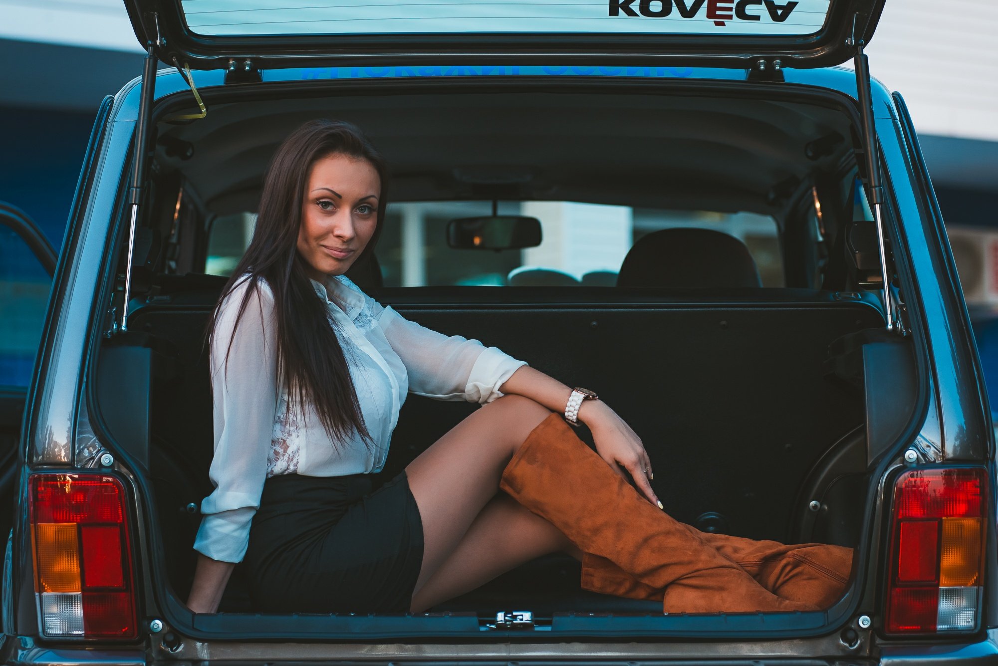 55. Девушка голубая машина