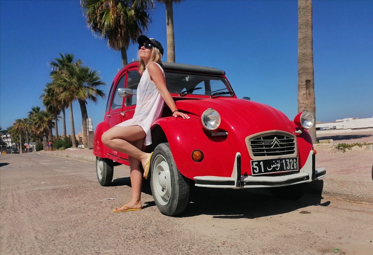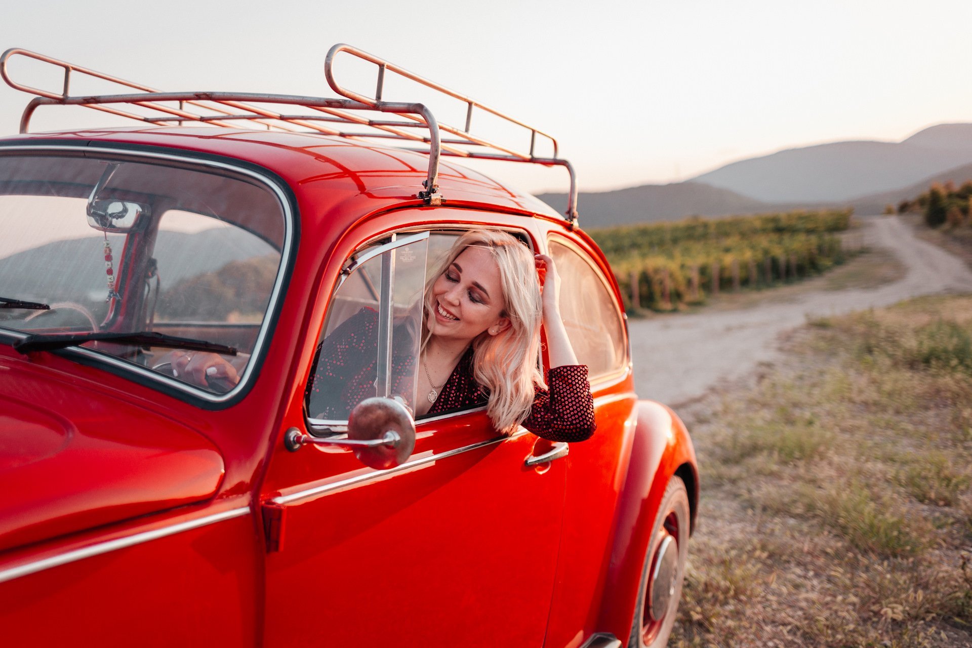 70. Брюнетка в красной машине