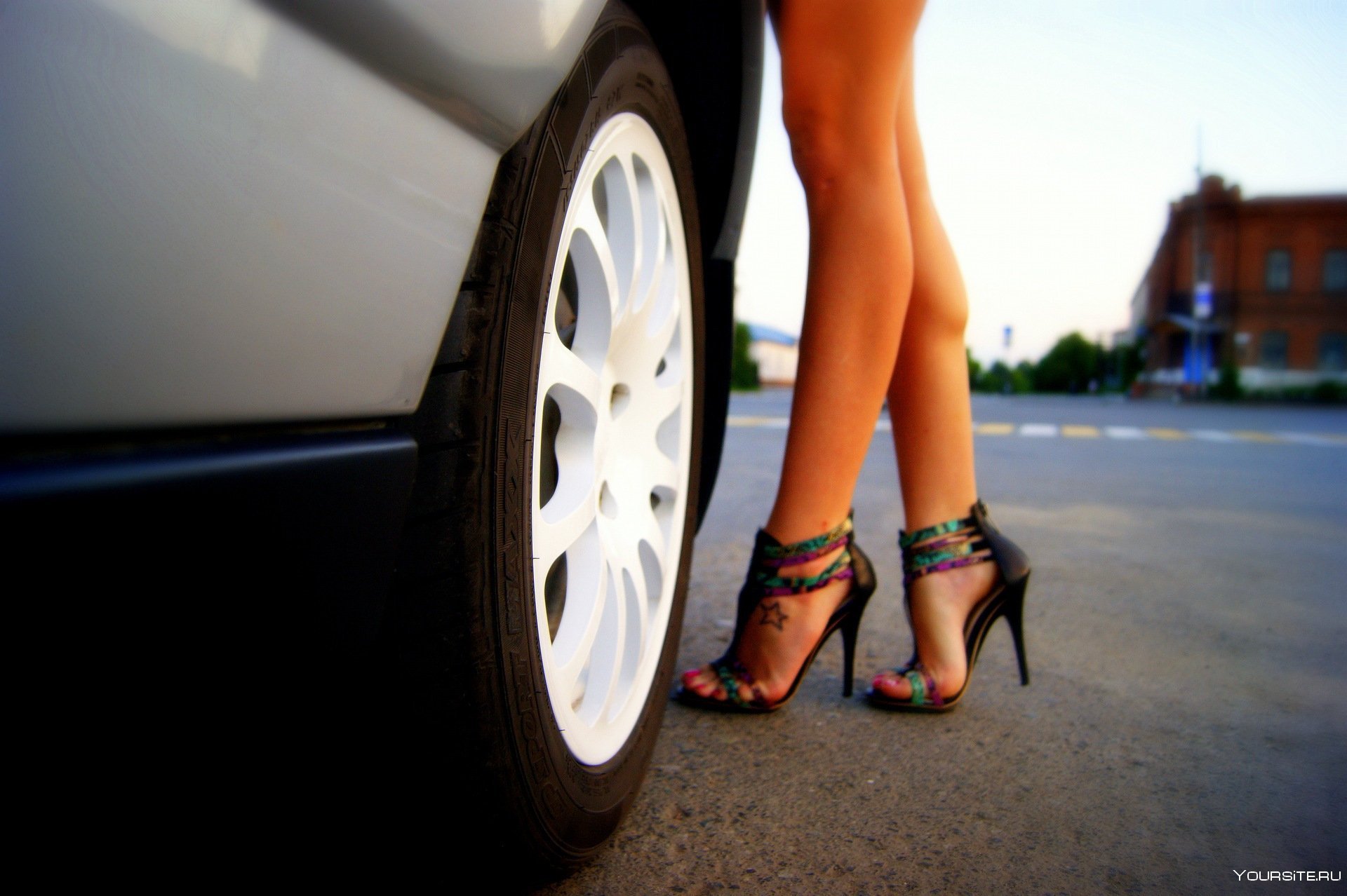 77. Женские ноги возле машины