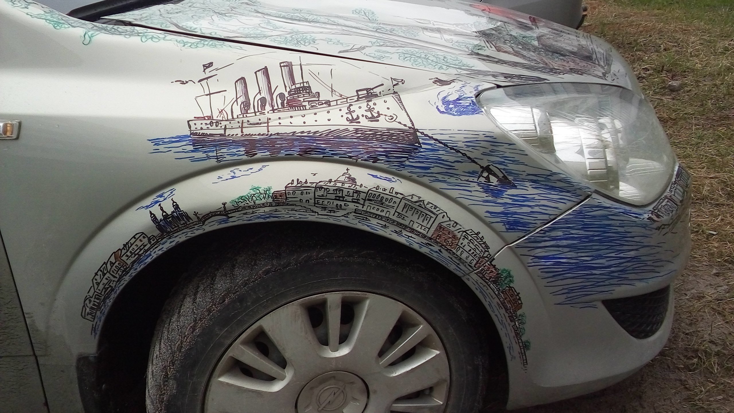 Роспись машины маркером