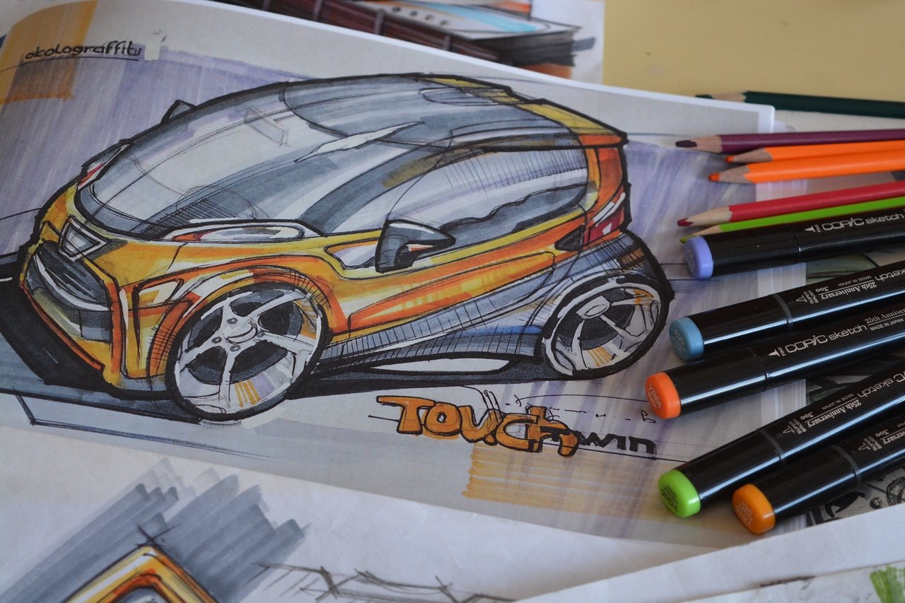 47. Скетчи автомобилей маркерами