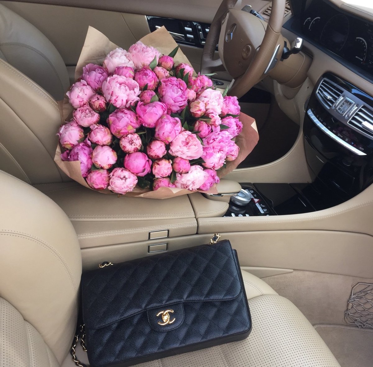 54. Букет цветов в салоне машины