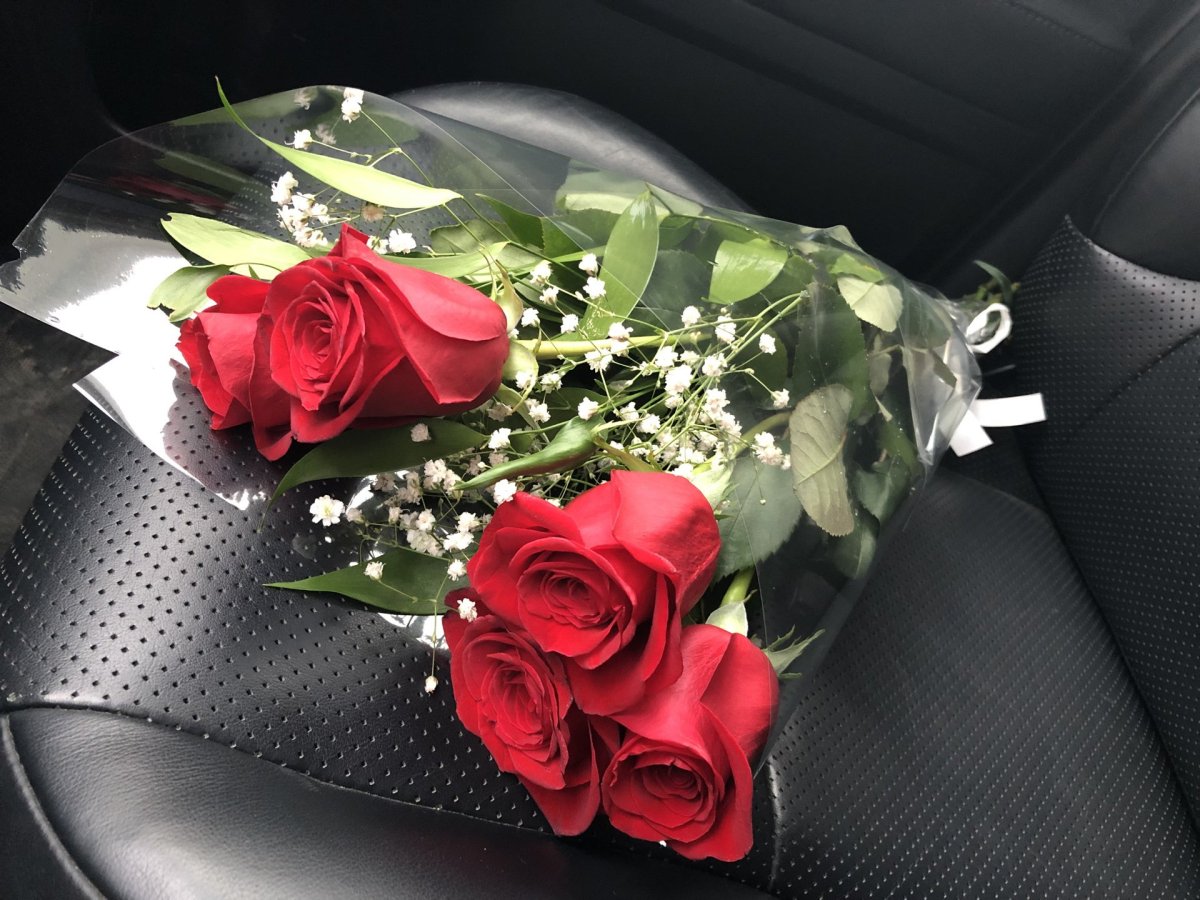16. Красные розы в салоне автомобиля