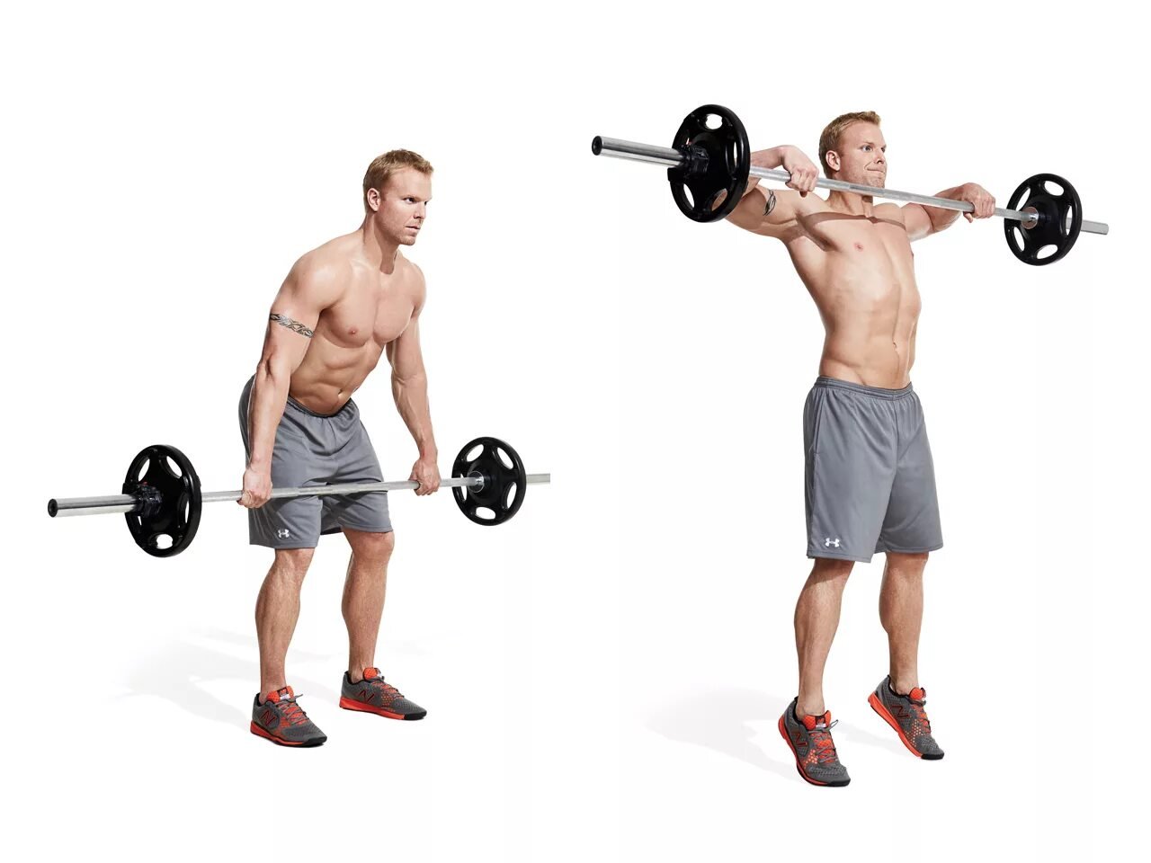 9. Подъем штанги перед собой обратным хватом