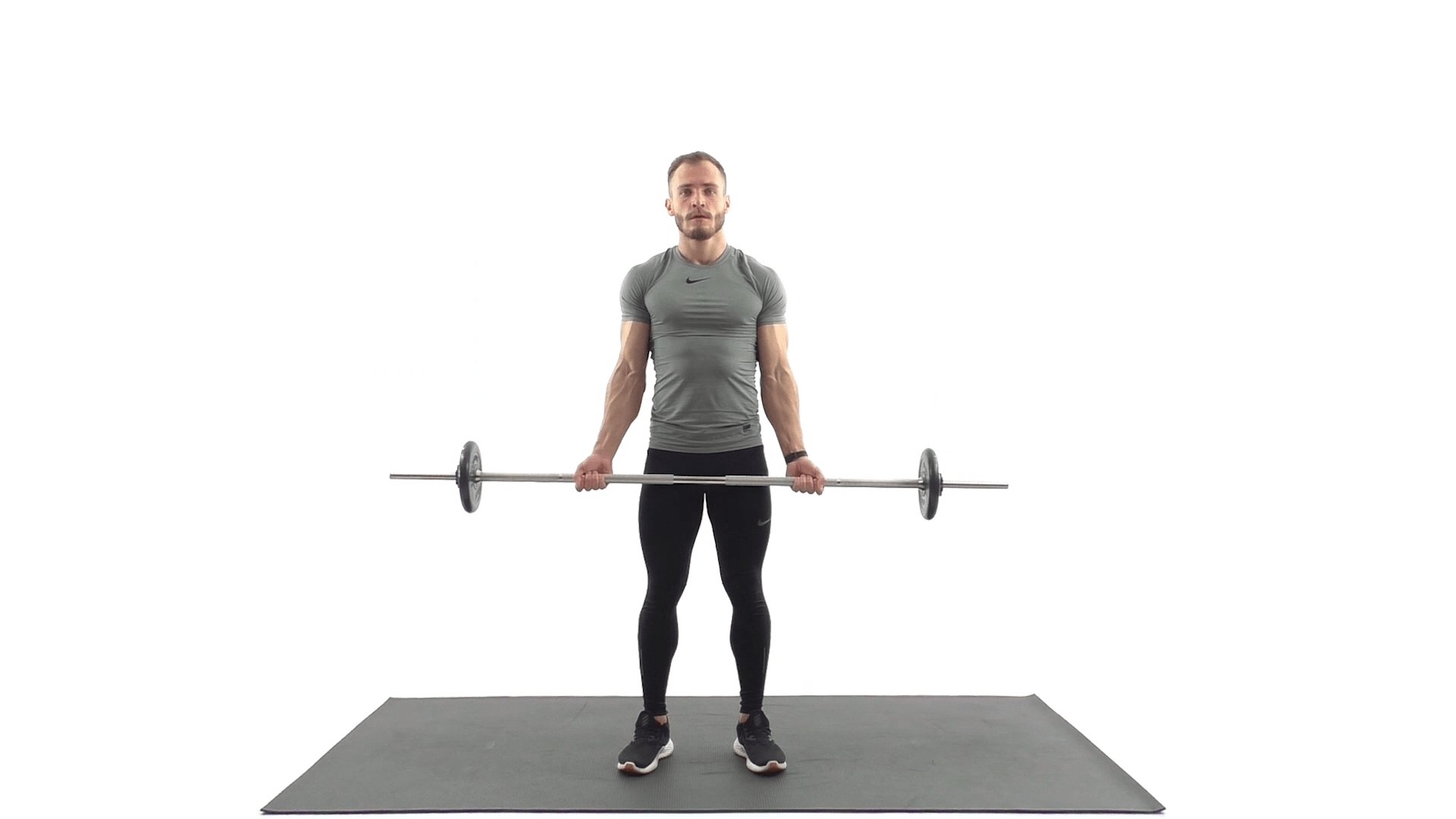 18. Подъем штанги обратным хватом стоя