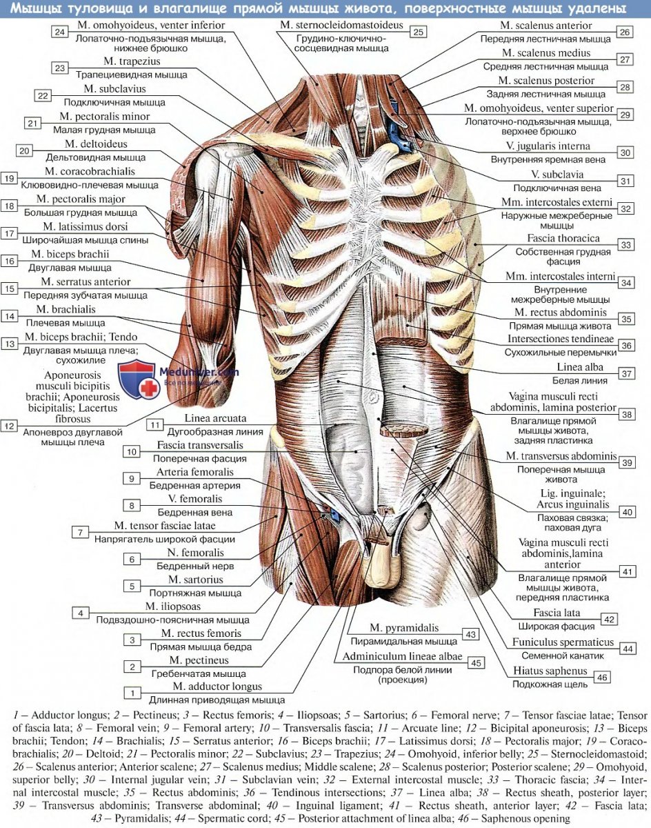 50. Musculus rectus abdominis анатомия