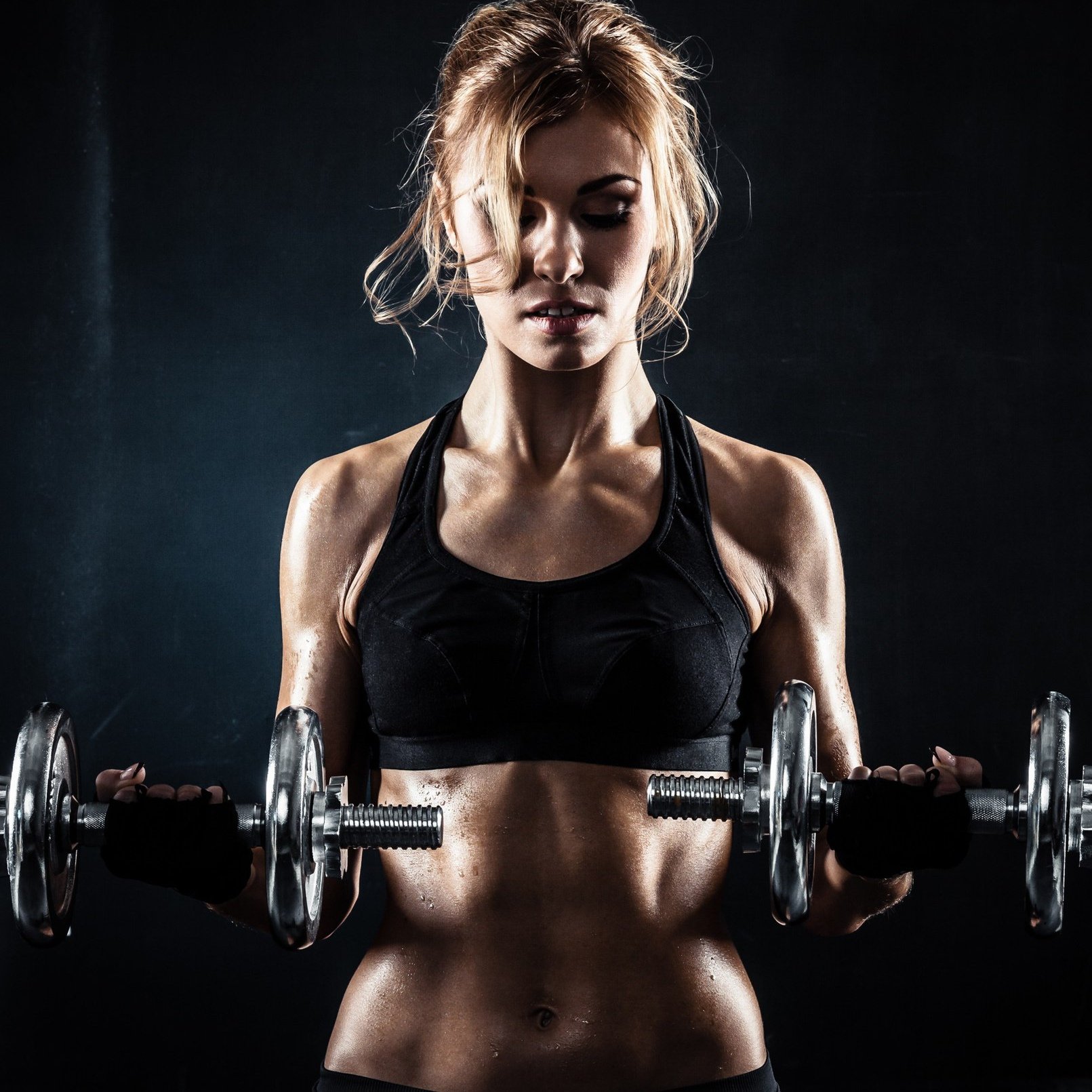 37. Девушка с гантелями