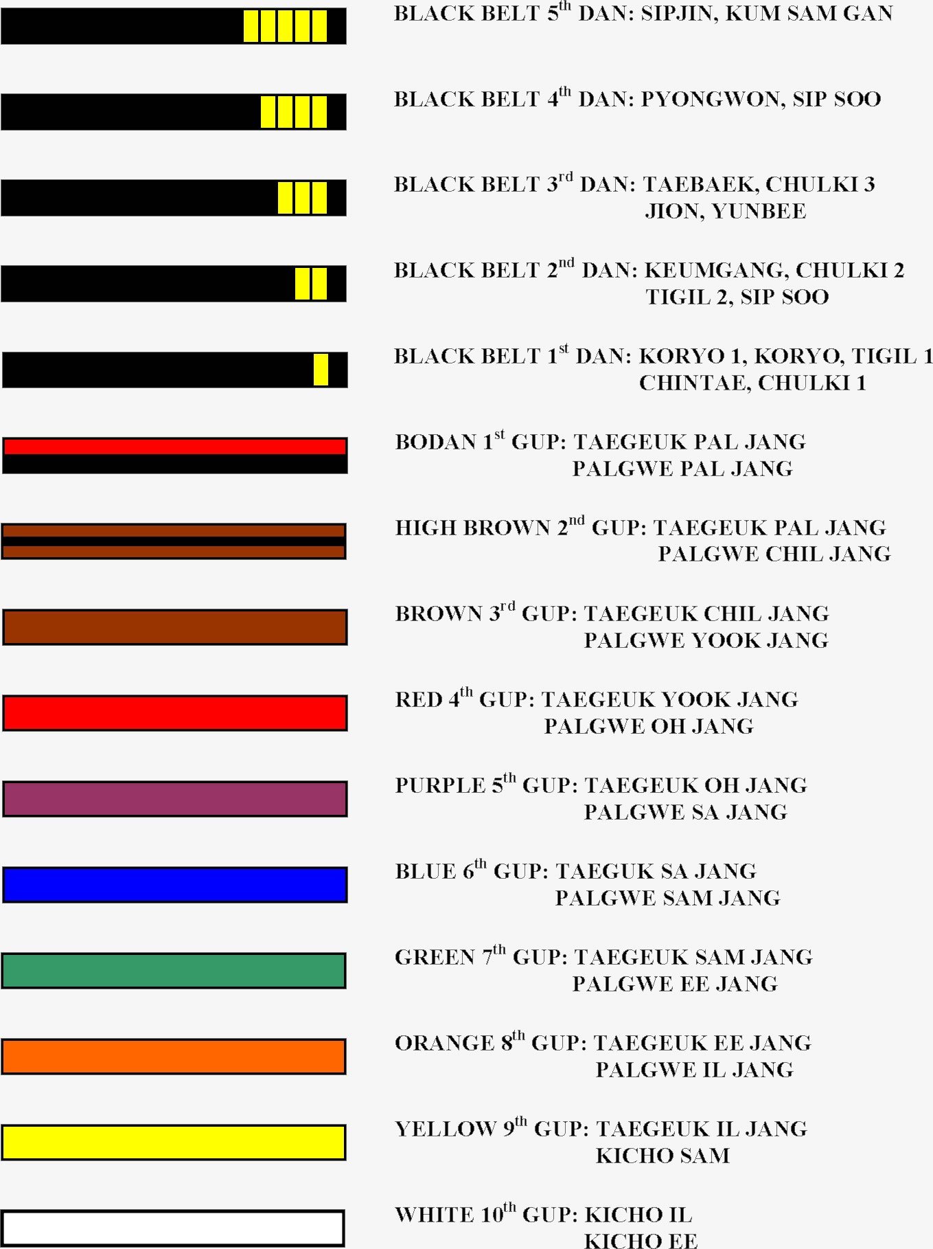 30. Пояса в тхэквондо по порядку ИТФ
