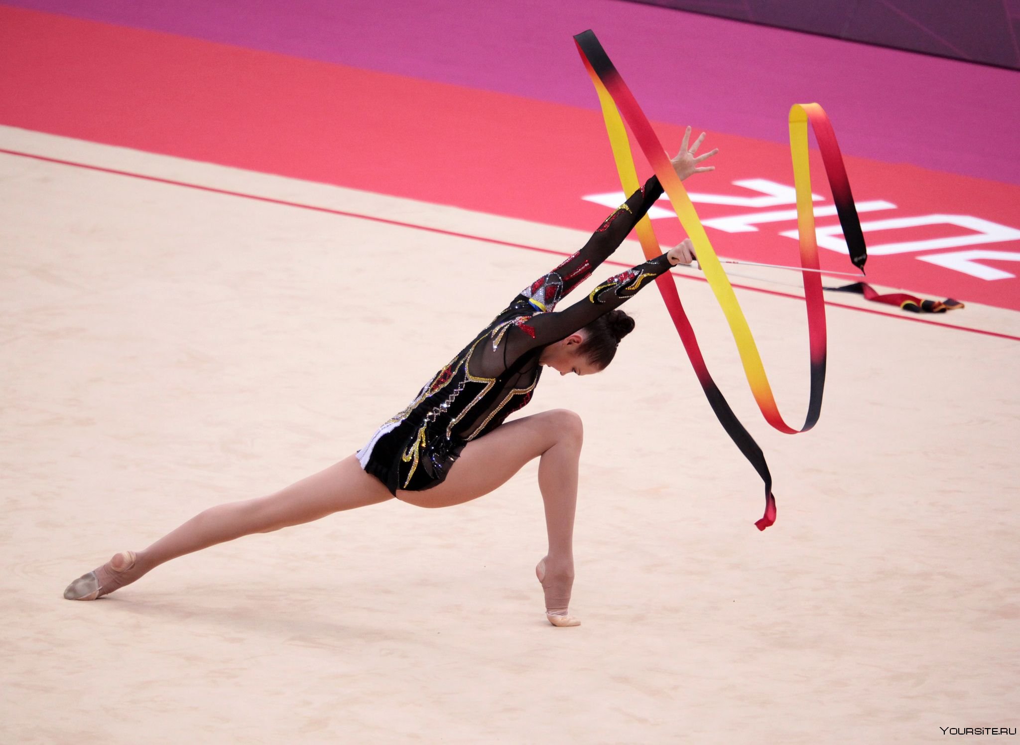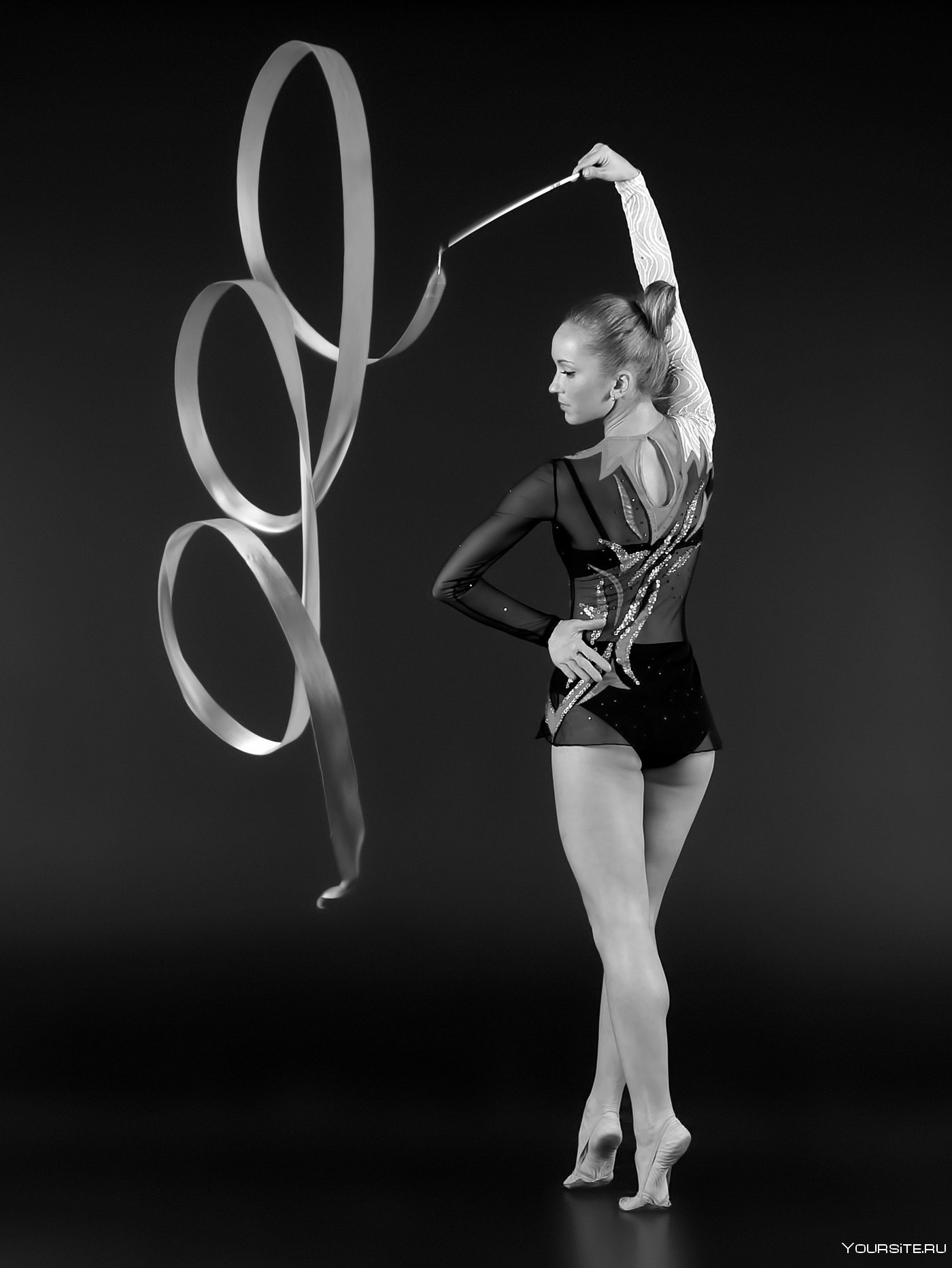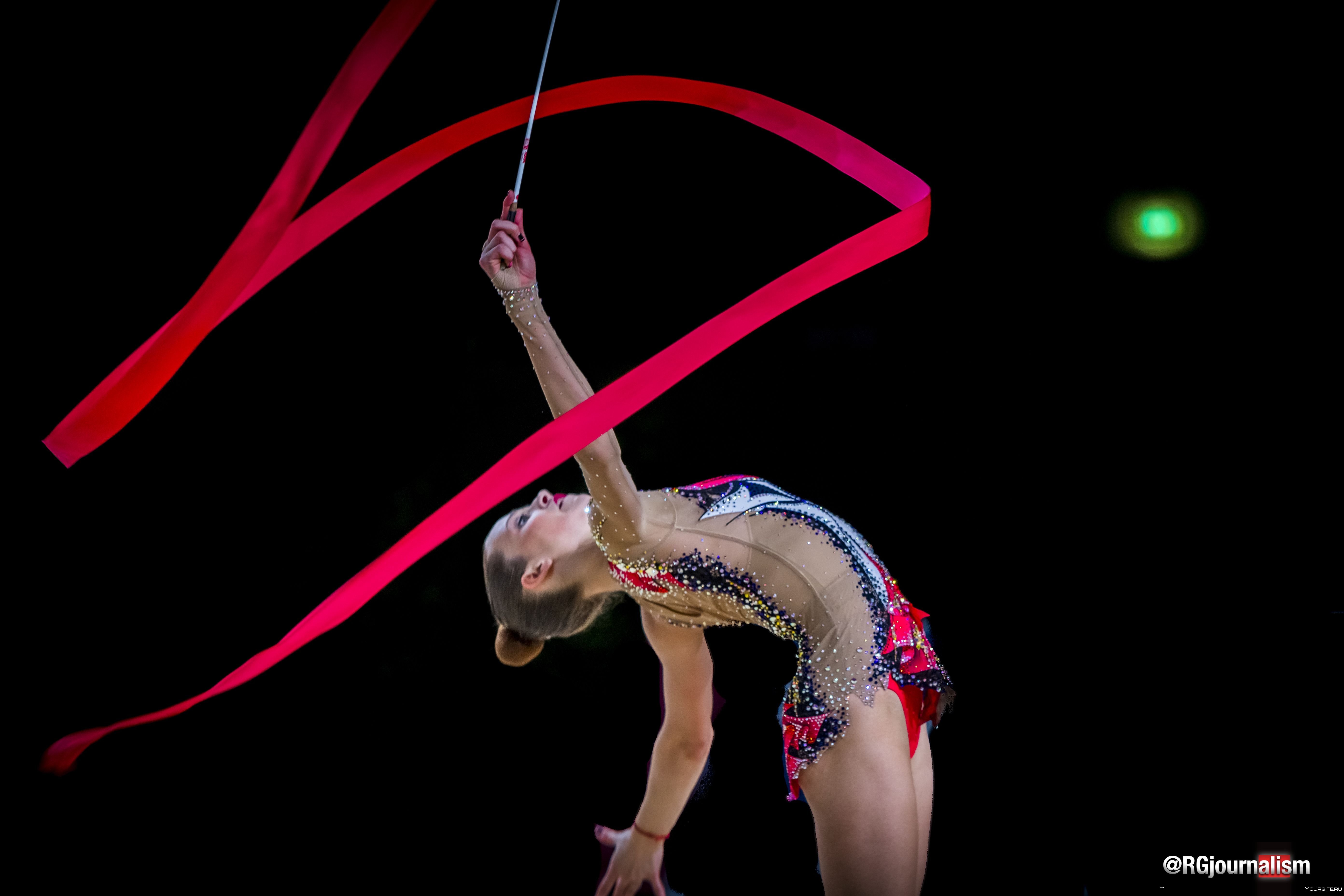 29. Гимнастка с лентой на черном фоне