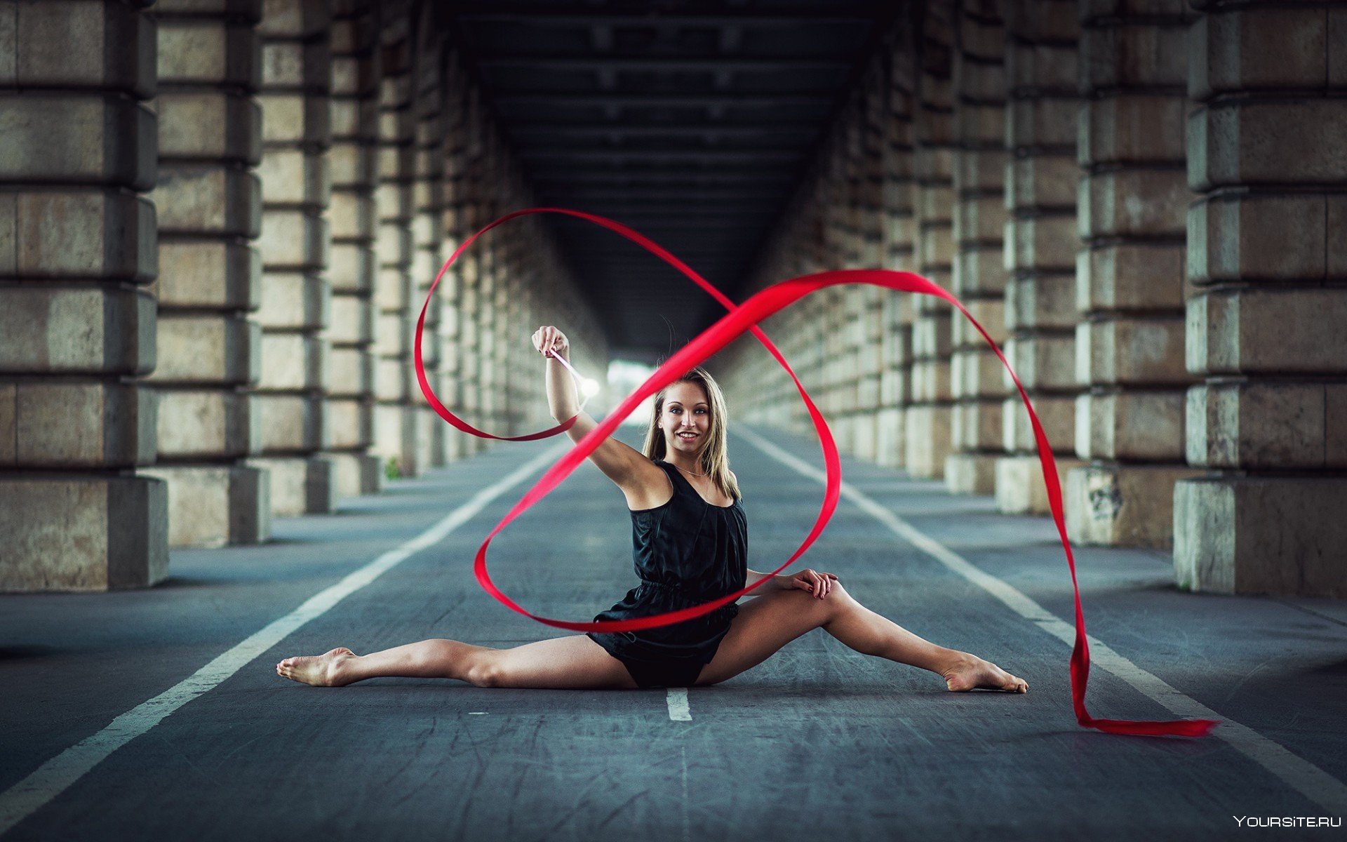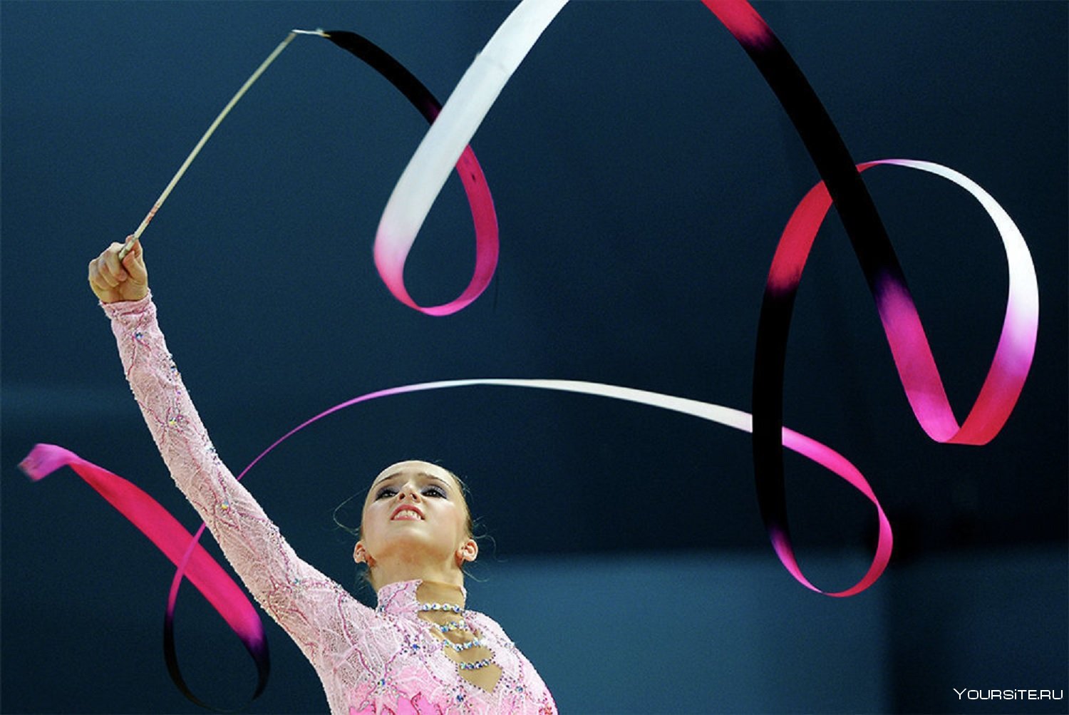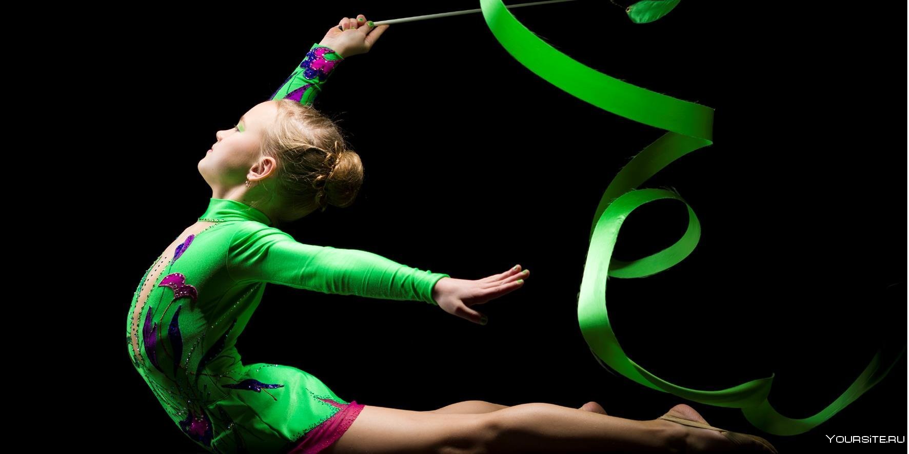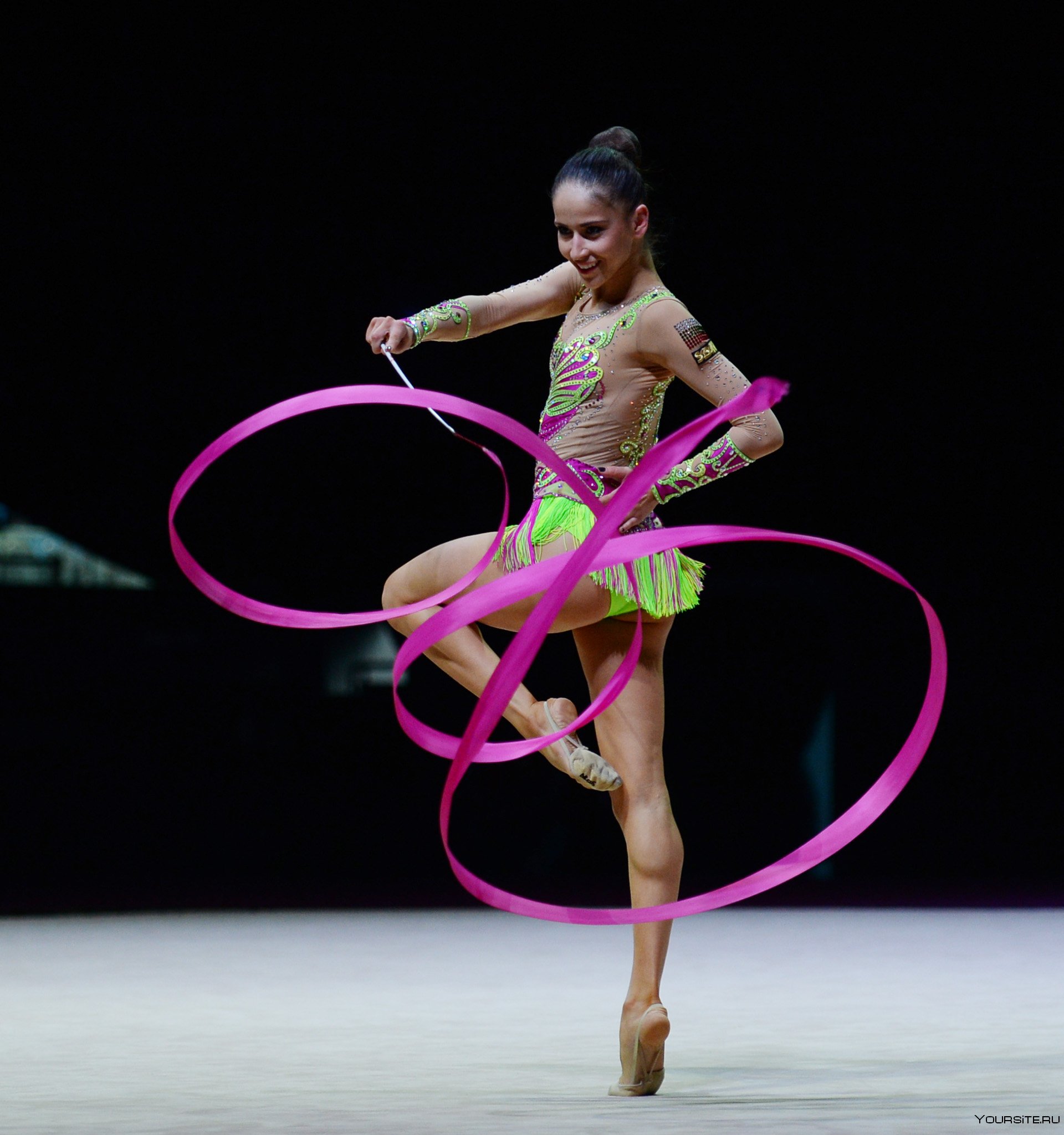 29. Гимнастка с лентой на черном фоне