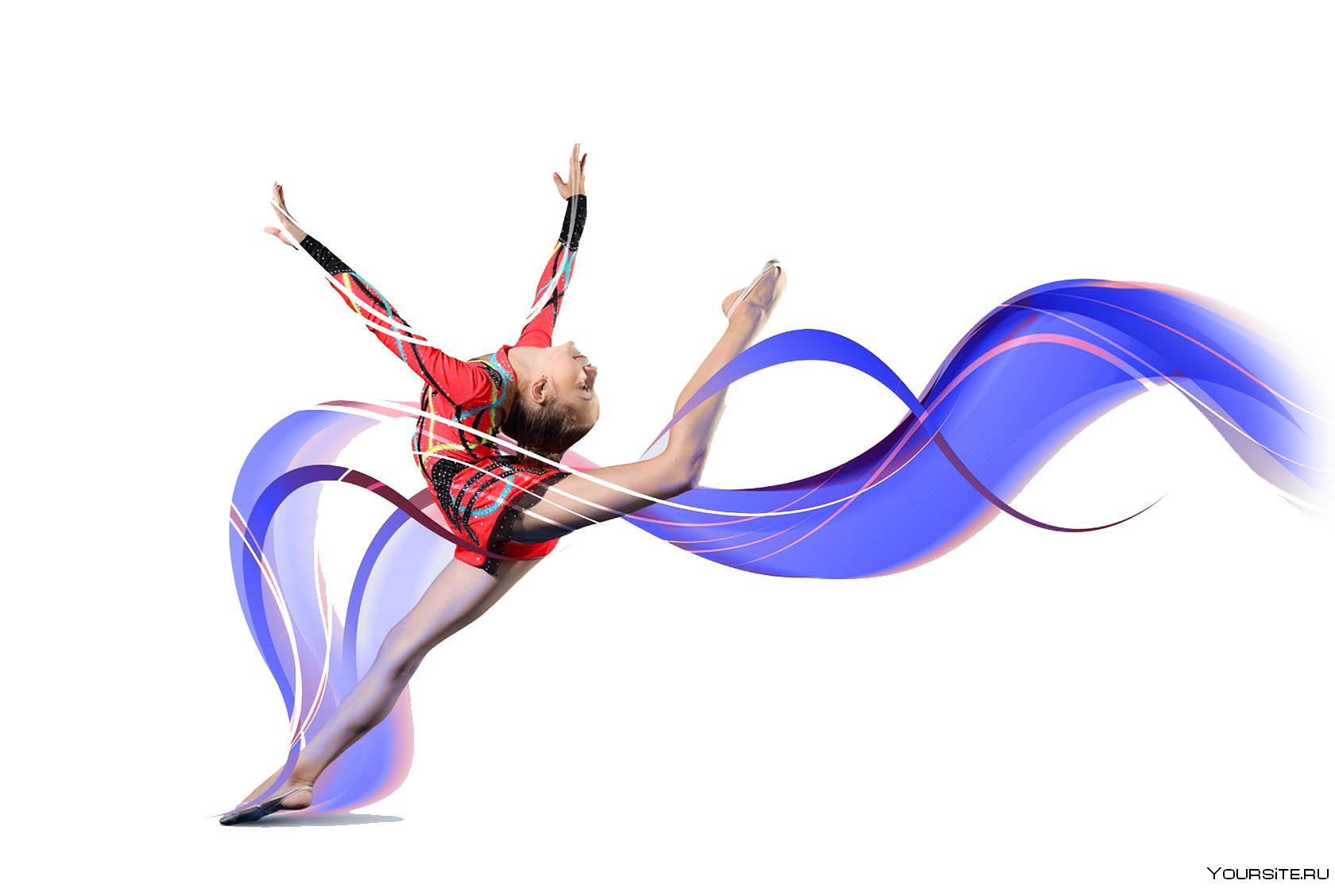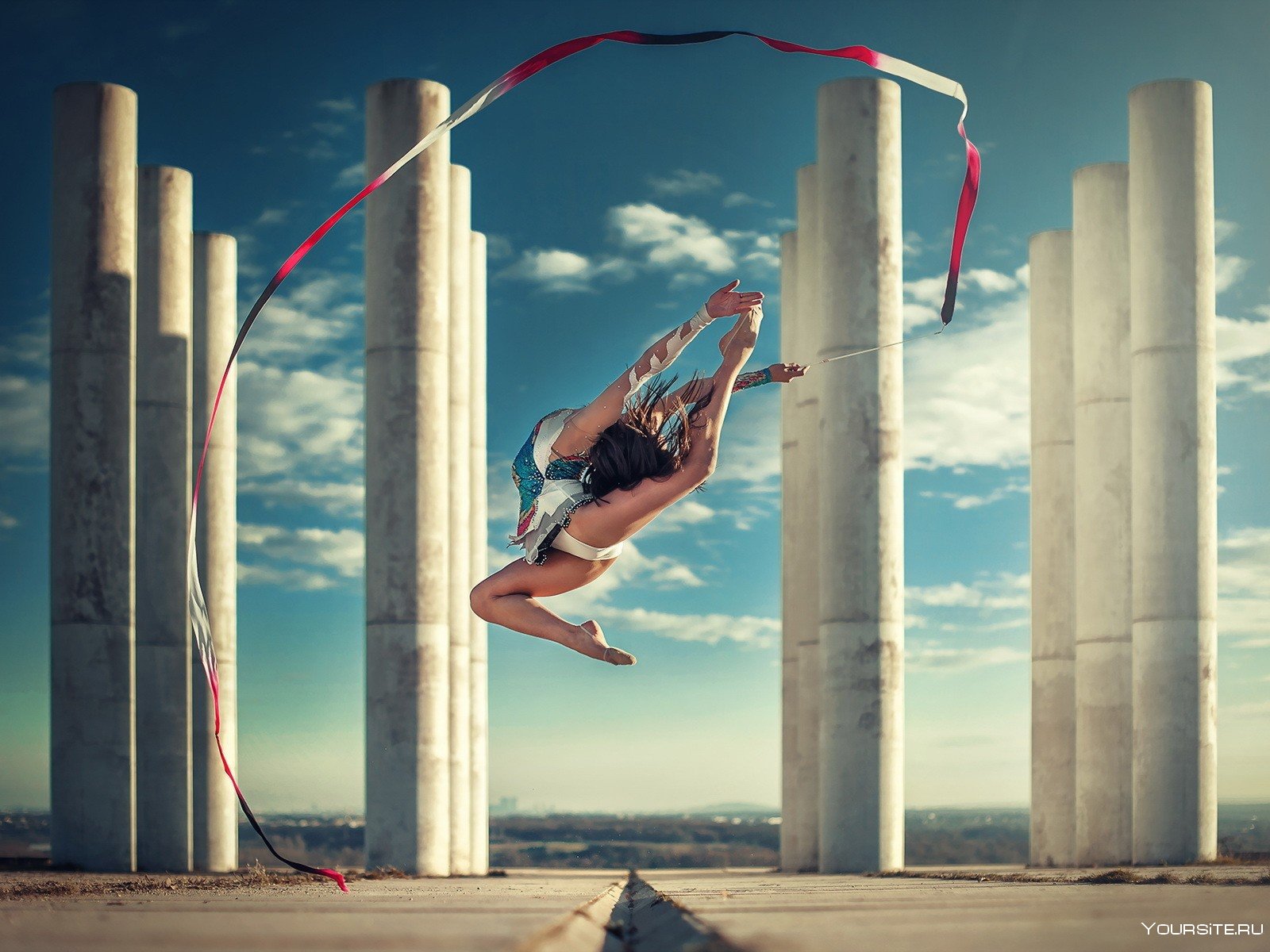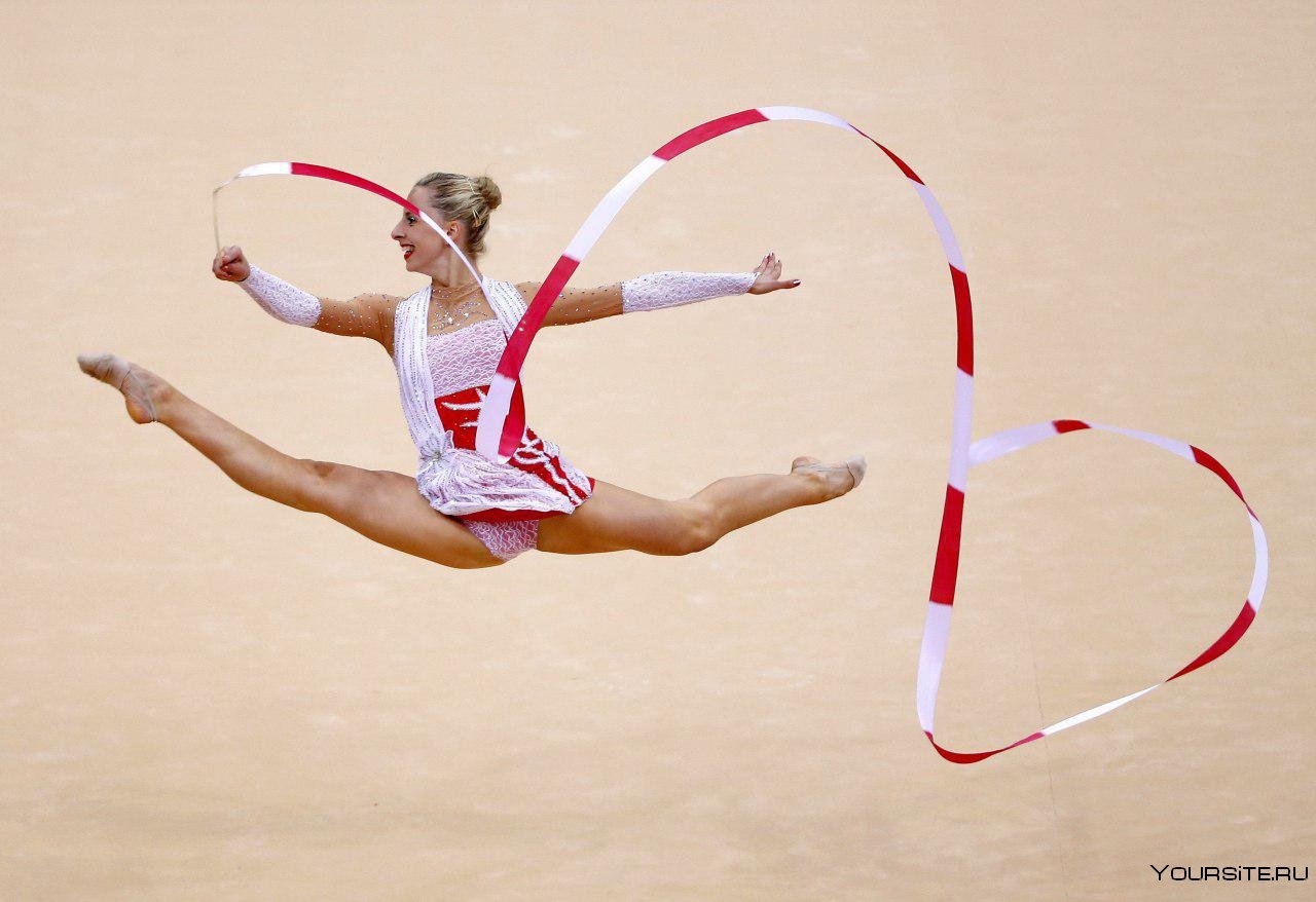 5. Гимнастка с лентой в прыжке