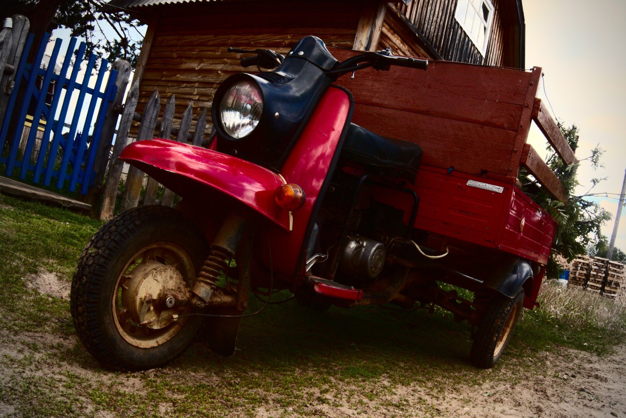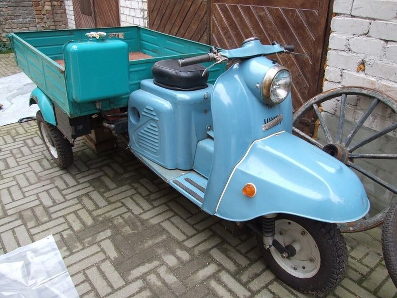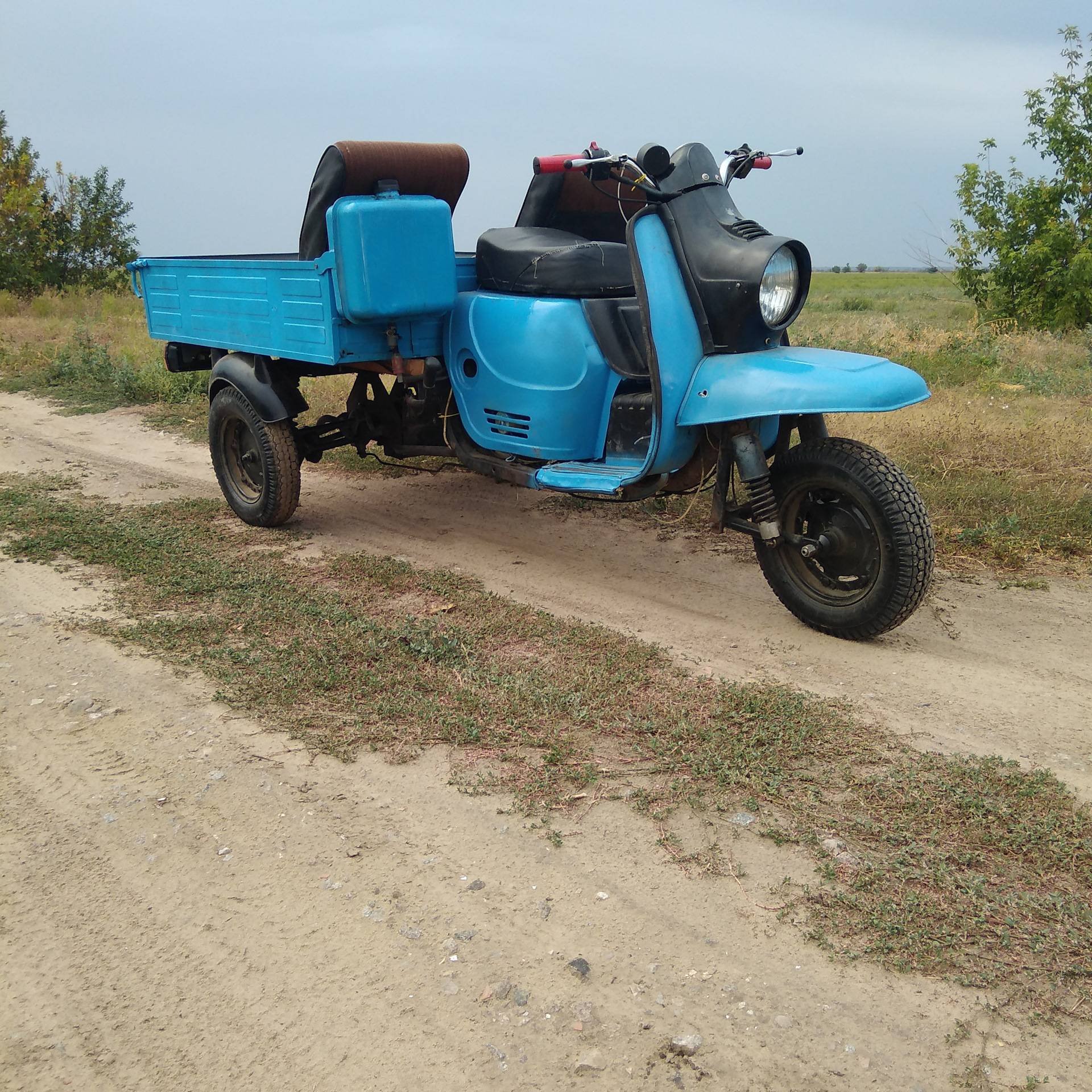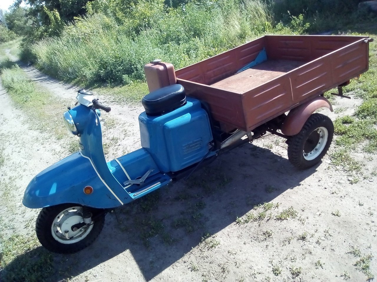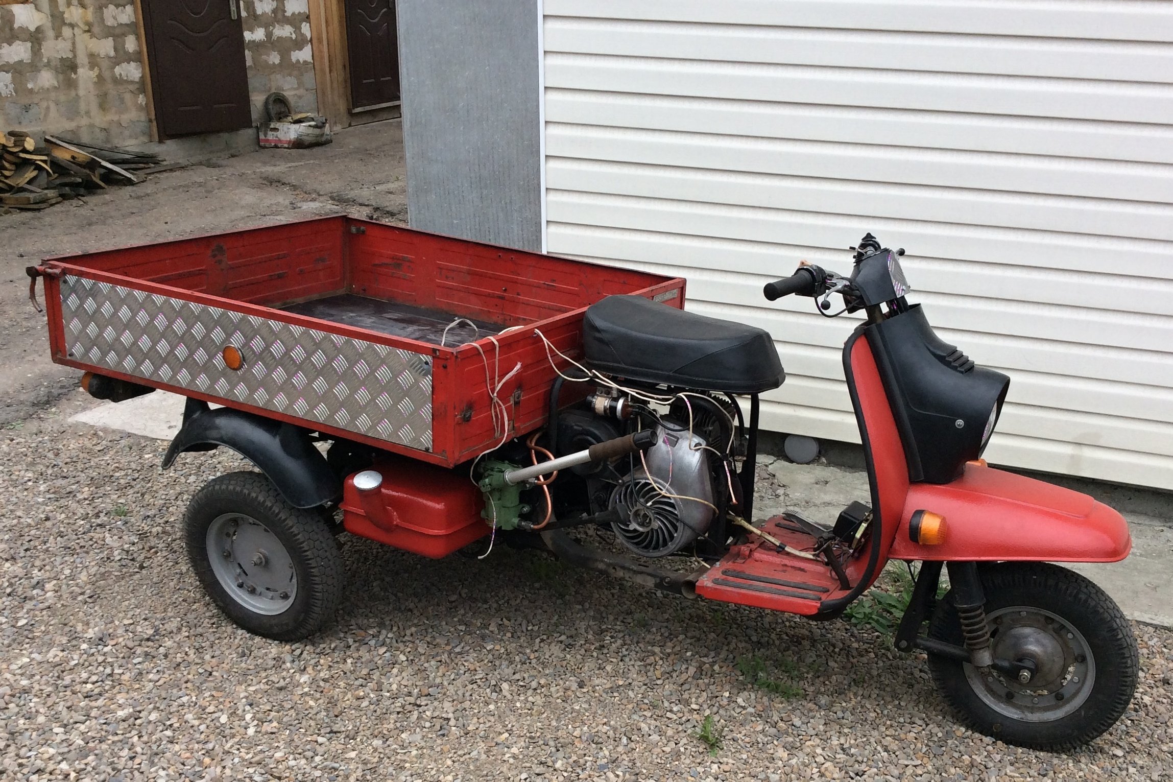 73. Откидной кузов на мотороллере муравей