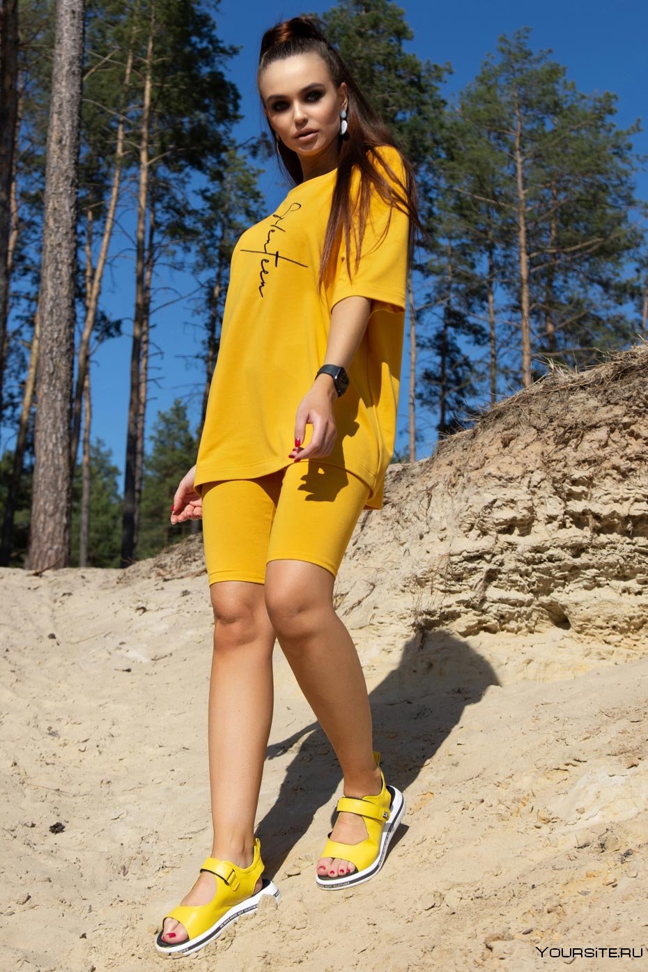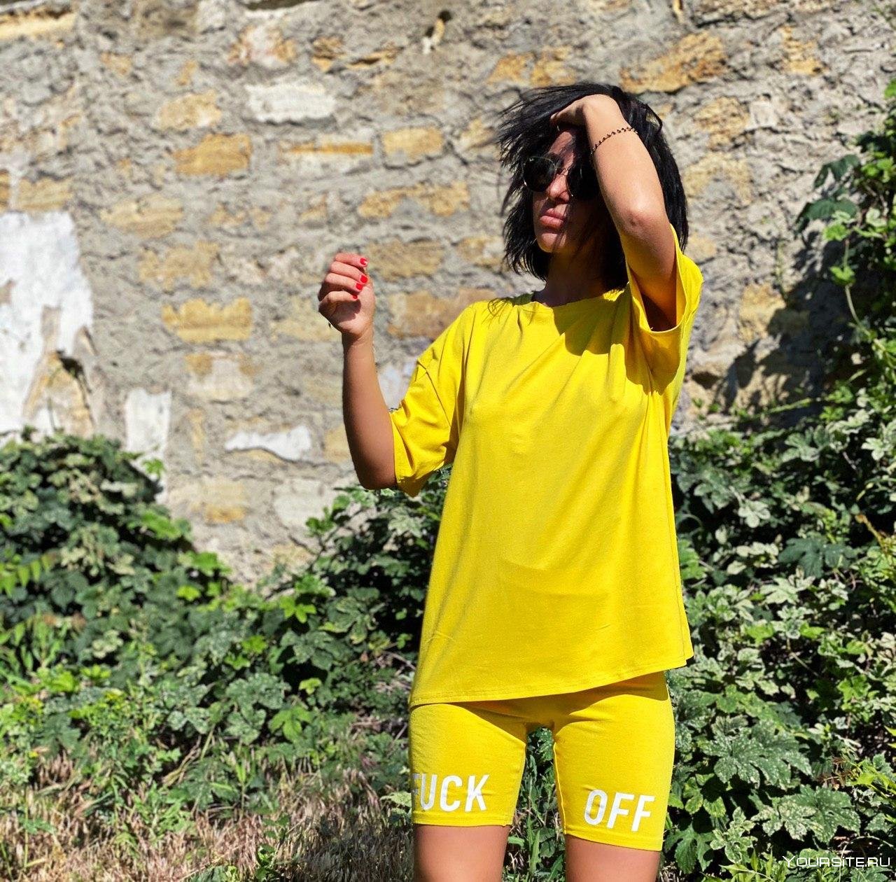 16. Желтый костюм с шортами