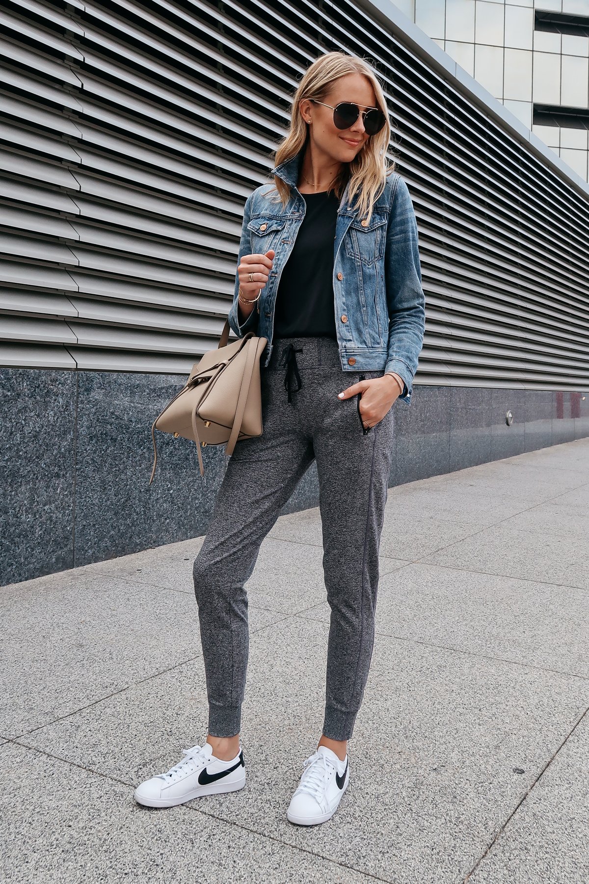 4. Спортивные штаны с джинсовой курткой