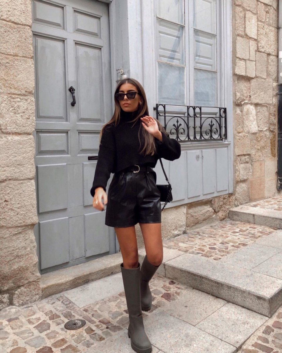 22. Кожаные шорты с водолазкой