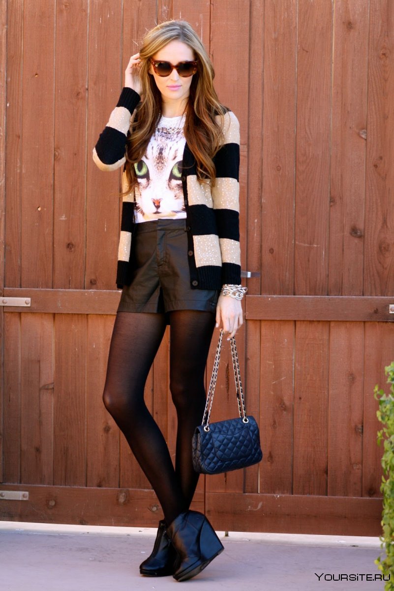 41. Кожаные шорты с колготками