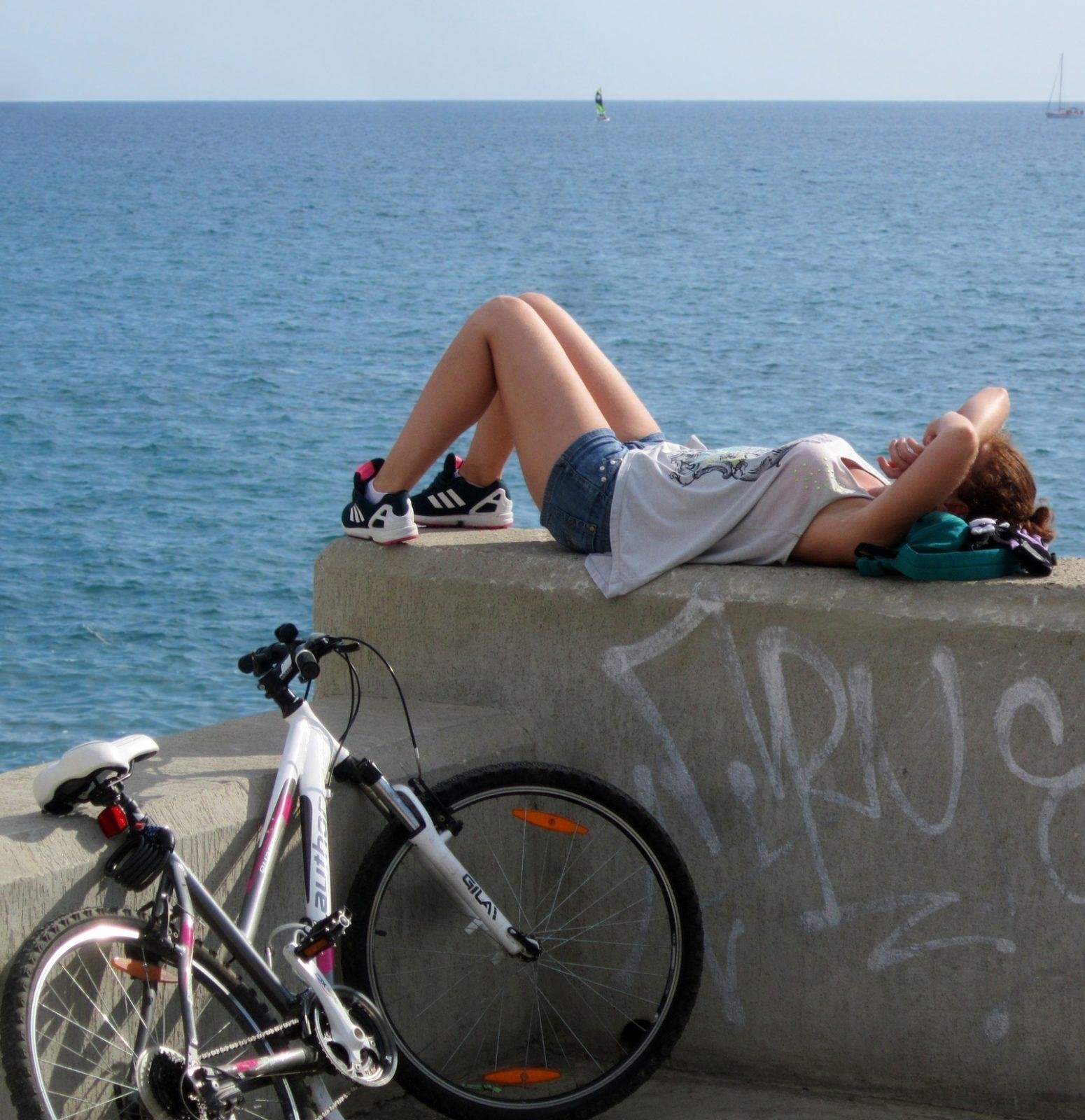 60. Девушка на велосипеде на море
