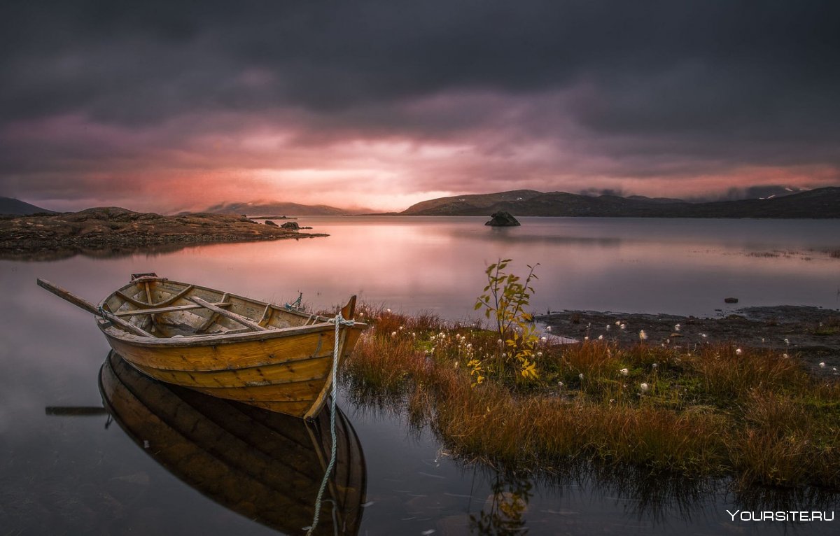 55. Горы озеро лодка