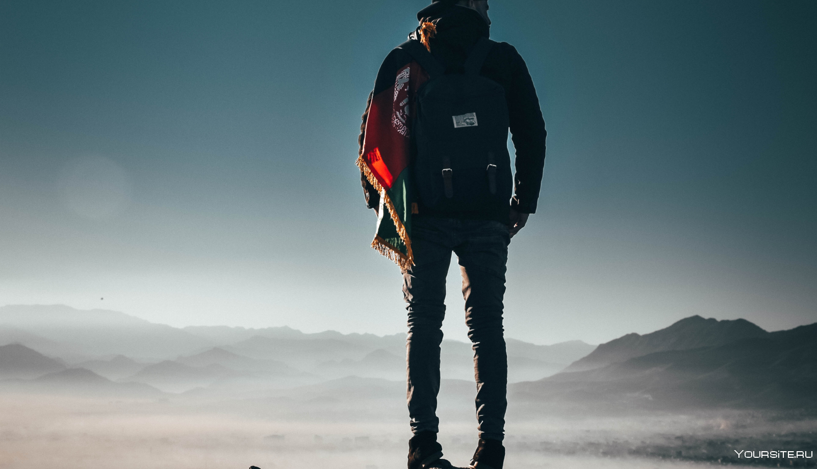 16. Парень в горах со спины