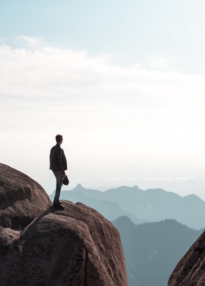 36. Человек на вершине скалы